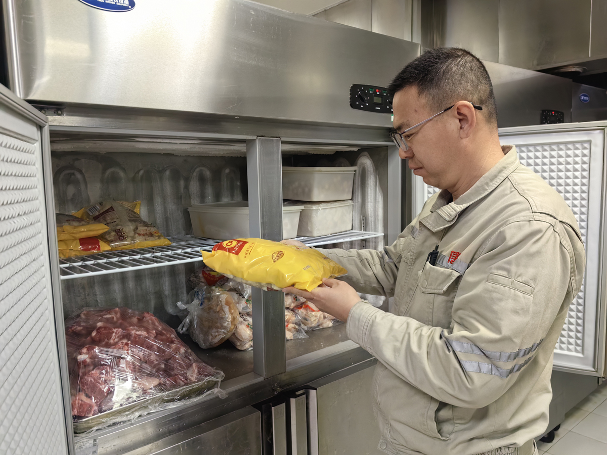 每到節(jié)日期間,該公司就把堅守職工的伙食保障放在心上,在保電職工的“舌尖”上下功夫,干好穩(wěn)人心、暖人心的實事、要事。備餐前的工作一個不落,后勤保障人員一絲不茍地進行食品安全檢查,逐一核驗冷凍食品的生產日期,指尖細致地撫過每一處包裝接縫,確保無脹袋、無破損。俯身查看線路接口,做好節(jié)日期間陰雨天氣線路防潮措施檢查。