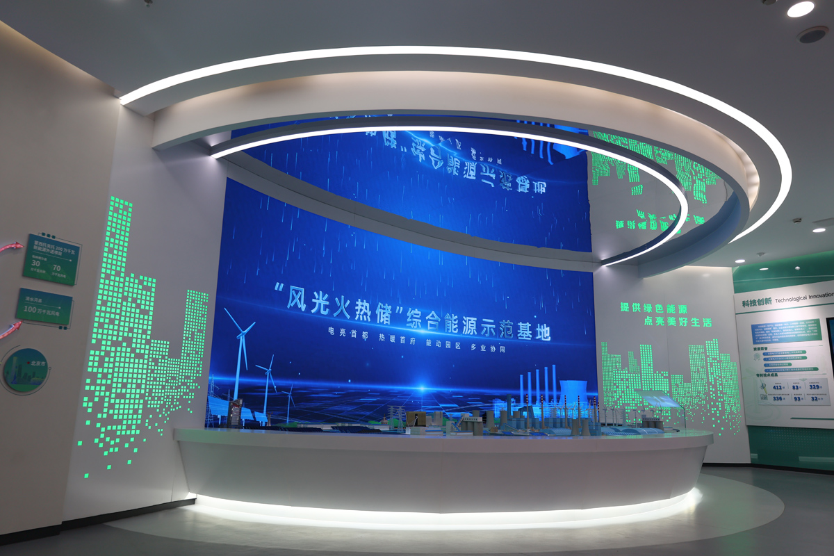 ????全廳共分為公司形象、發展歷程、領導關懷、產業布局、智慧沙盤、科技創新、業績貢獻、黨建引領、未來藍圖、企業榮譽十大主要板塊。應用多點交互、跨屏互動、數字沙盤、矩陣滑軌等智慧技術,實現長屏一覽、地屏光影、合屏沖擊等數字展示新形式,讓參觀者能夠“沉浸式”領略千萬千瓦級“風光火熱儲”綜合能源示范基地的過去、現在及未來。