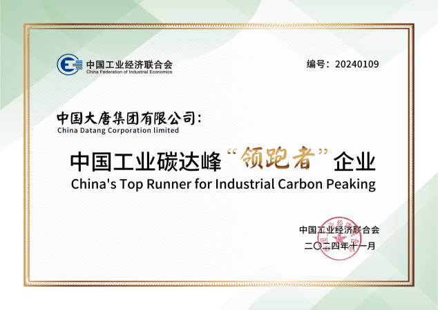 中國大唐榮獲中國工業碳達峰“領跑者”企業稱號