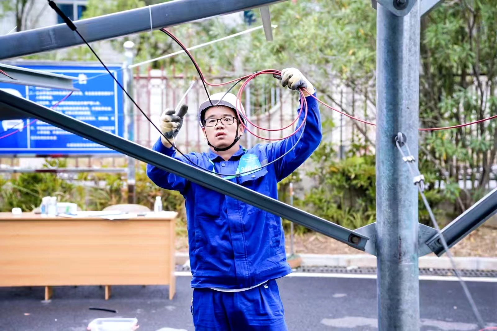 技能競賽是檢驗實力的“試金石”,胡善喜始終保持“歸零”心態。在競賽中精進技藝,他成為大家口中的“獲獎專業戶”。2018年,他首戰冷水江市職業技能競賽獲電工二等獎;2019年,參加集團公司電氣專業競賽獲評“集團公司優秀技能選手”;2023年,在湖南省維修電工競賽中拿下個人二等獎。隨著新能源產業發展,胡善喜敏銳意識到“傳統火電技術不能丟,新能源技術必須學”。2024年,他主動開啟光伏運維知識學習之路,將當年鉆研火電技術的勁頭悉數拿出:白天跟著光伏運維團隊駐守現場,熟悉逆變器、電池板的構造和原理;晚上對著資料啃專業術語,反復琢磨調試流程。短短半年,他便掌握了光伏運維逆變器調試、光伏板檢測等核心技能,在大唐華銀光伏運維專業競賽中再度獲評“大唐華銀技術能手”,實現從“火電骨干”到“光伏尖兵”的跨界突破。2025年,湖南省首屆光伏發電運維競賽,成為檢驗他跨界成果的最佳舞臺。理論考試中,他對答如流,每個知識點都爛熟于心;實操環節,逆變器調試、故障排查一氣呵成,最終成功摘得個人一等獎?!懊恳淮胃傎惗际浅砷L,肯學肯鉆,就沒有跨不過的坎?!焙葡灿眯袆幼C明,只要有不服輸的勁兒,就能在新領域闖出一片天。