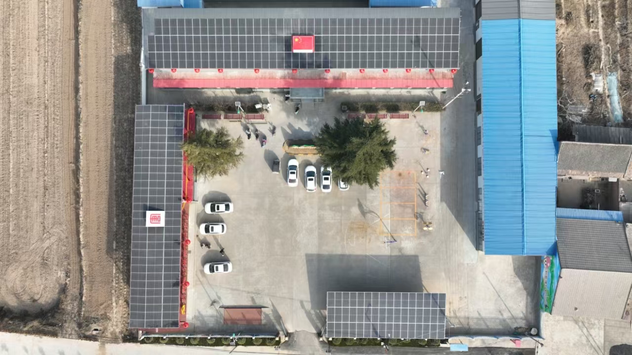 走進(jìn)和家樓村村部,一排排深藍(lán)色的單晶硅組件板在日光的照射下閃閃發(fā)光,格外耀眼。分布式光伏和智能充電樁緩解周邊群眾充電壓力,方便群眾“綠色”出行。光伏板中央將中國紅、大唐紅元素融入項(xiàng)目中,嵌入國旗和唐標(biāo),點(diǎn)綴大紅燈籠、中式欄桿等中國風(fēng)傳統(tǒng)風(fēng)格,繪就一幅美麗鄉(xiāng)村新畫卷。